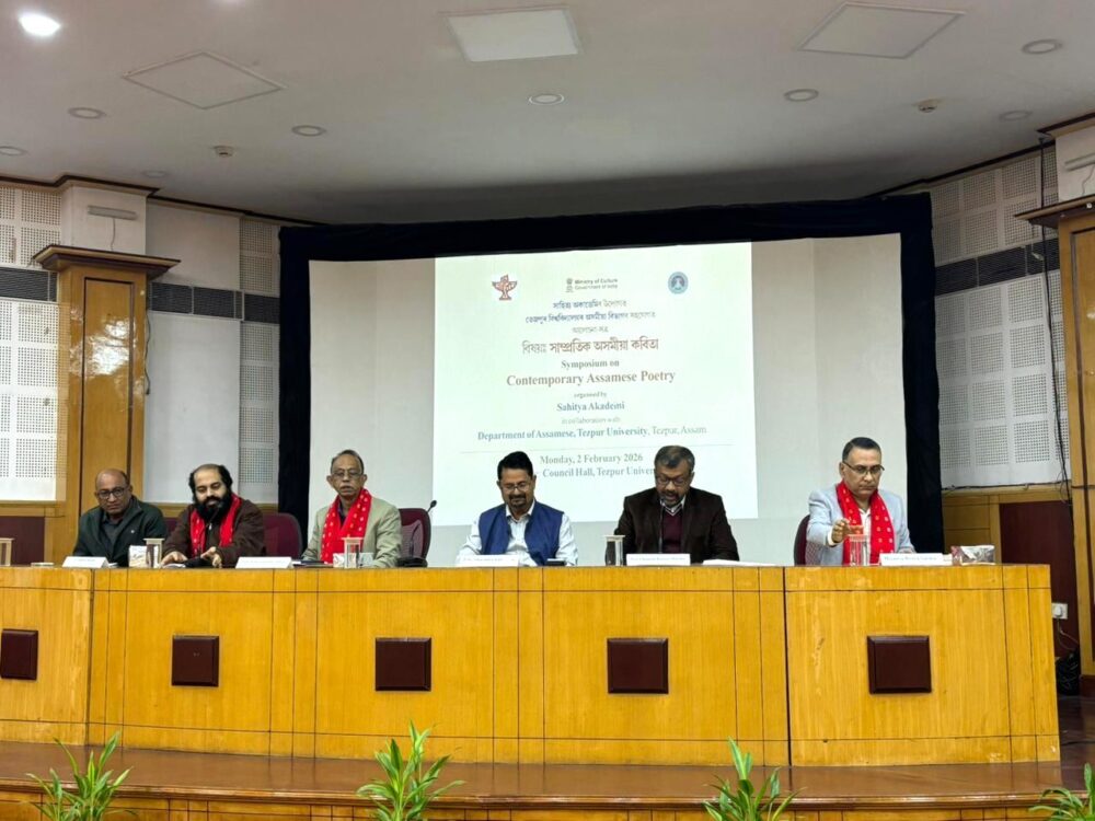 A one-day symposium on “Contemporary Assamese Poetry”, jointly organised by Sahitya Akademi and the Department of Assamese, Tezpur University, was held at the Council Hall, Tezpur University. The symposium brought together eminent scholars, poets, and academics to deliberate on the evolution, philosophy, and future of Assamese poetry within the larger Indian and global literary context.