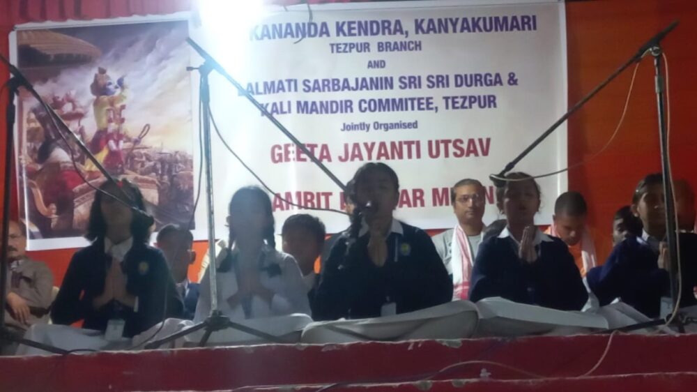 Tezpur, December 14, 2025 (Sunday): Vivekananda Kendra Kanyakumari Tezpur Branch organised a vibrant Geeta Jayanti celebration at Lalmati on December 14, 2025, marking the 5127th anniversary of the Krishna-Arjuna Samvada from the Mahabharata’s Kurukshetra battlefield.