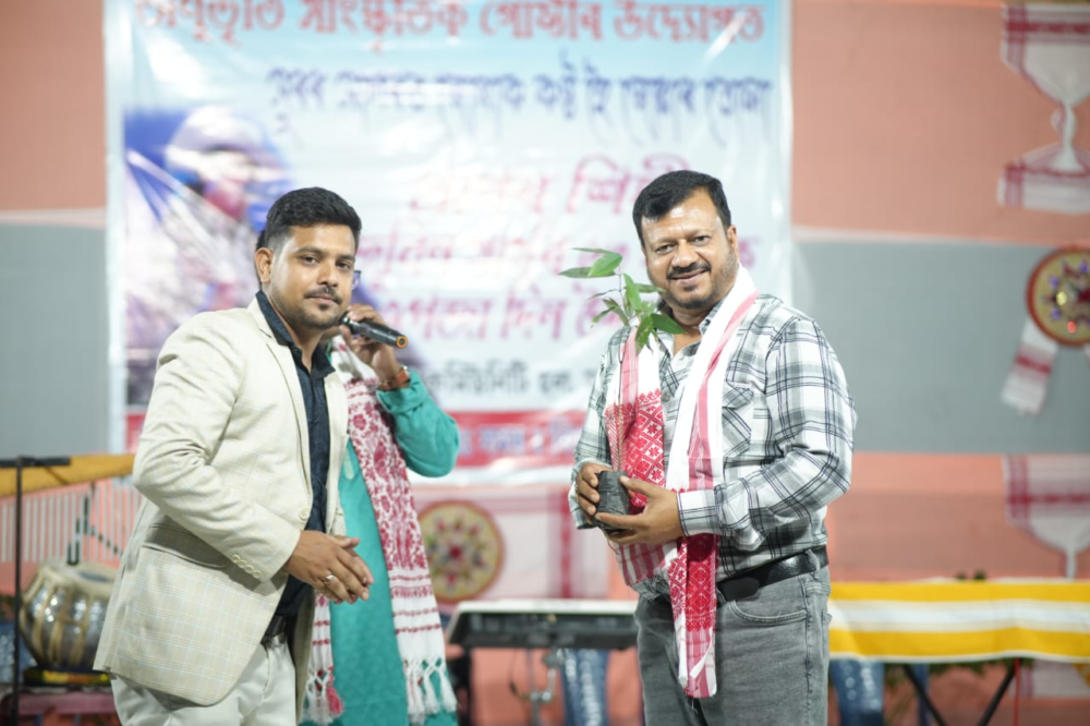 The programme was smoothly anchored by Sri Navajyoti Mudoi, Sri Troilokya Borah, and Sri Deepjyoti Borah, whose engaging presentation ensured seamless flow. Singer Uddeepana Goswami captivated audiences with a melodious tribute performance, adding to the event’s artistic richness.