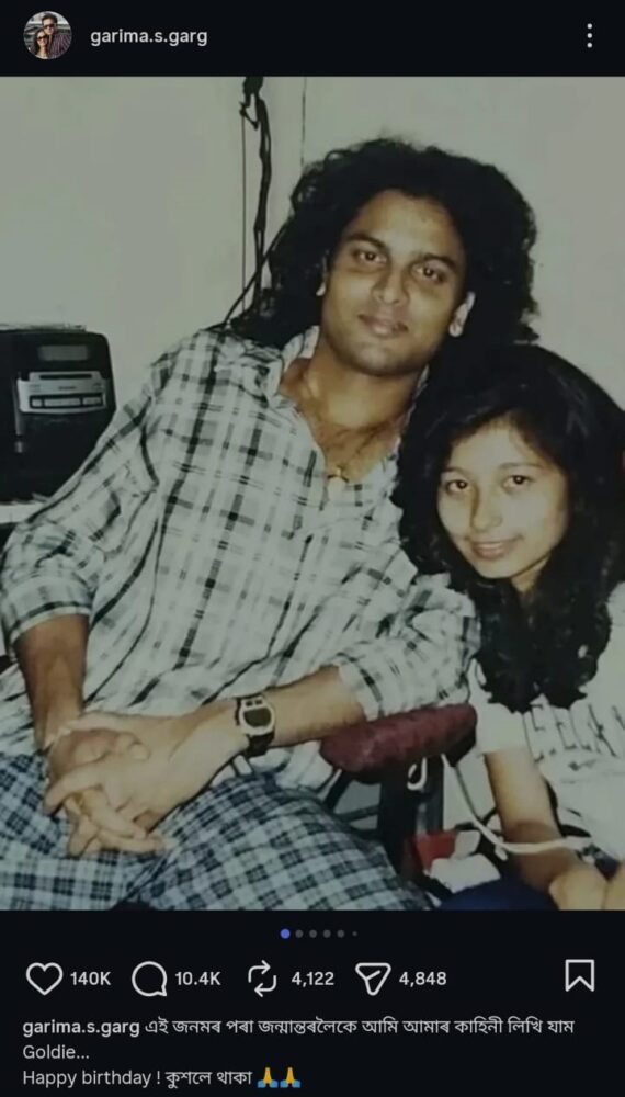 Zubeen Da’s wife, Garima Saikia Garg, also shared an emotional tribute: “From this life to the next, we will continue writing our story, Goldie…”